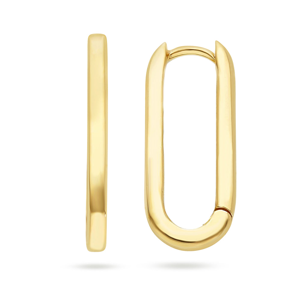 14K Yellow Gold Geometric Oval Huggie Earrings