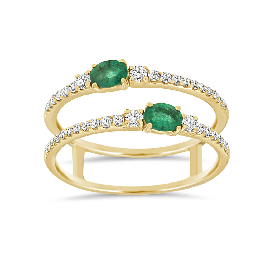 14K Yellow Gold 2 Row Oval Emerald and Diamond Ring