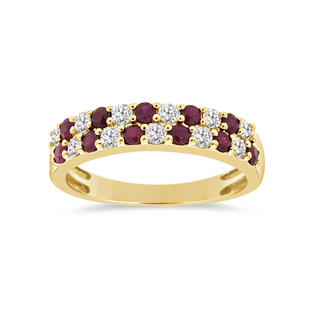 14K Yellow Gold Double Row Alternating Diamond and Ruby Ring