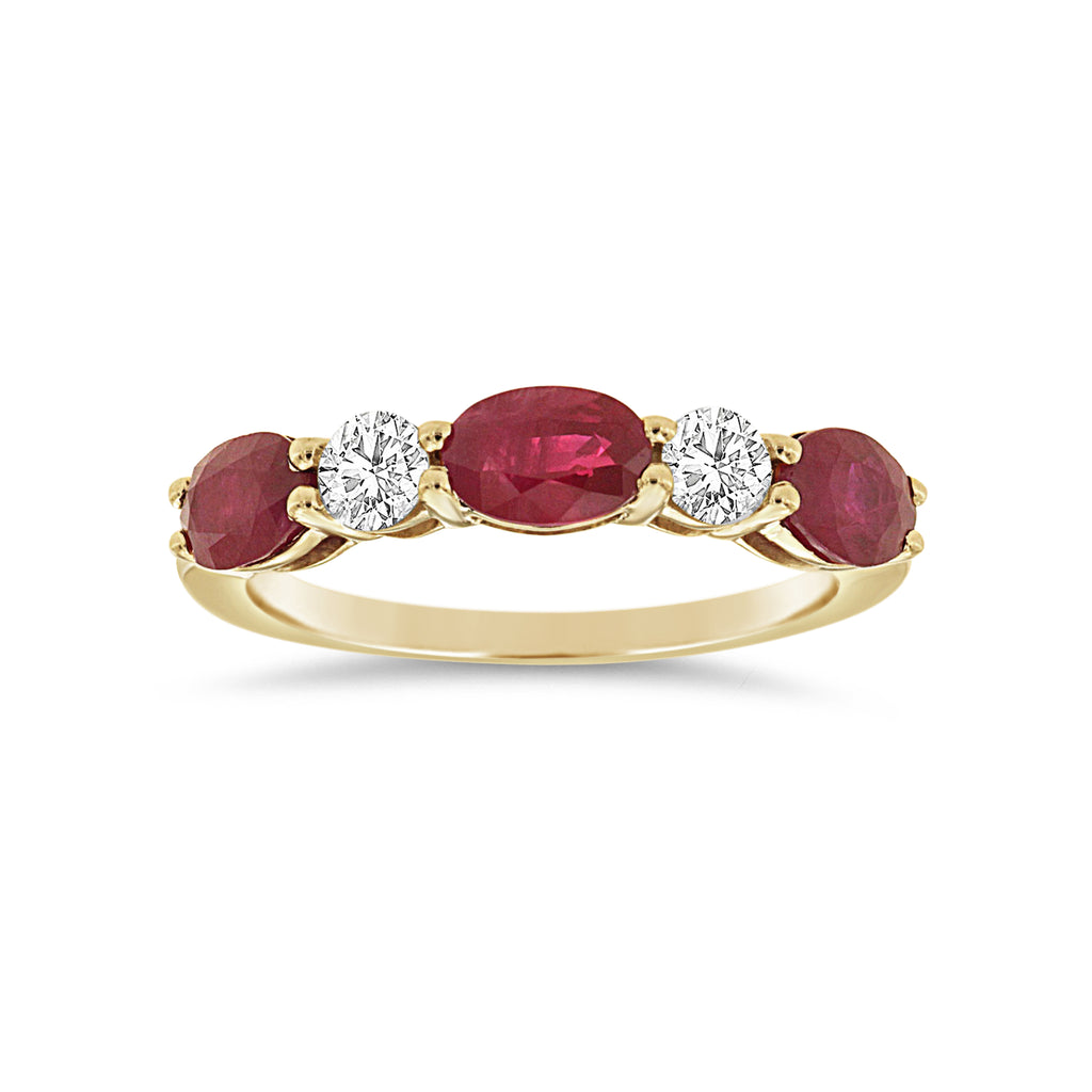 14K Yellow Gold Oval Ruby and Round Diamond Alternating Ring