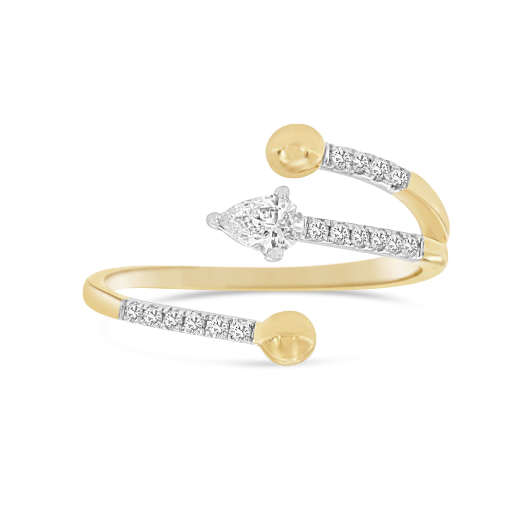 14K Yellow Gold Pear Diamond Bypass Ring (0.12CTW)