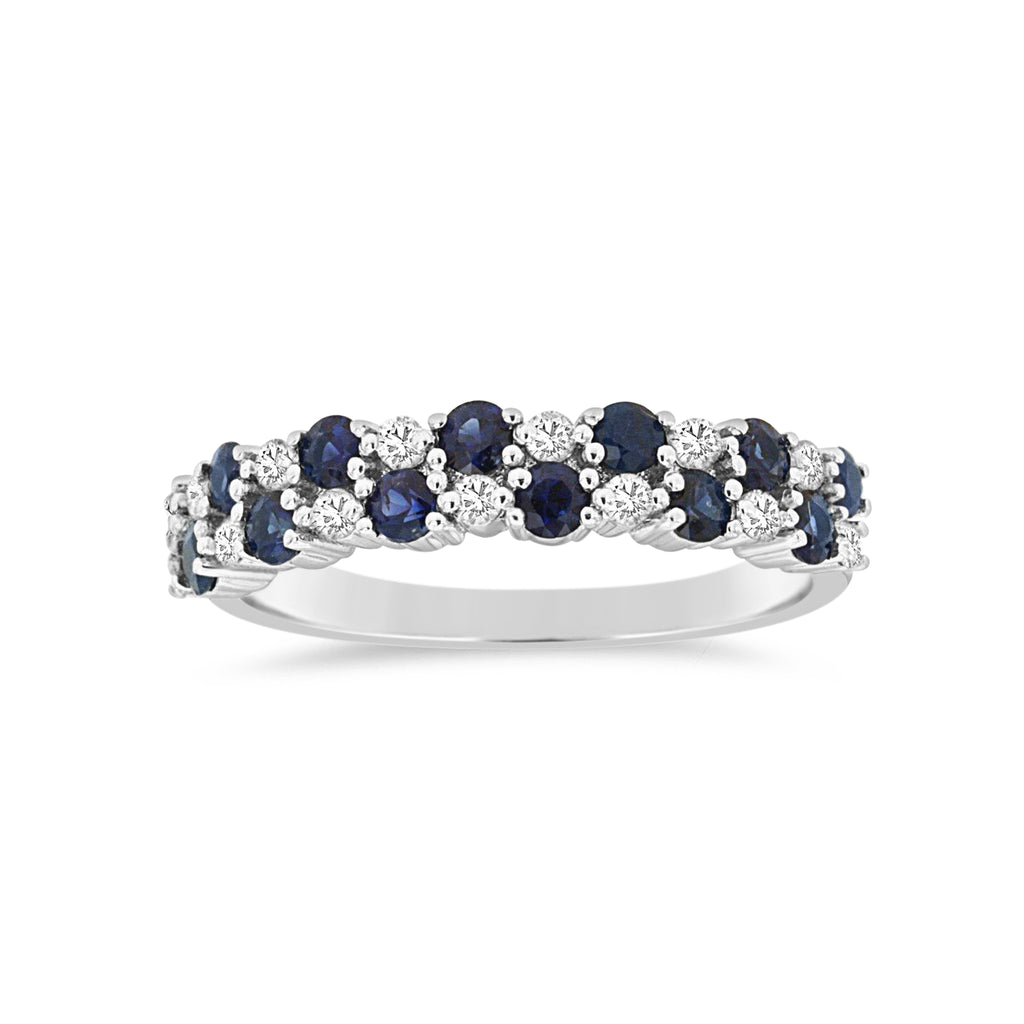 14K White Gold Double Row Alternating Diamond and Sapphire Ring