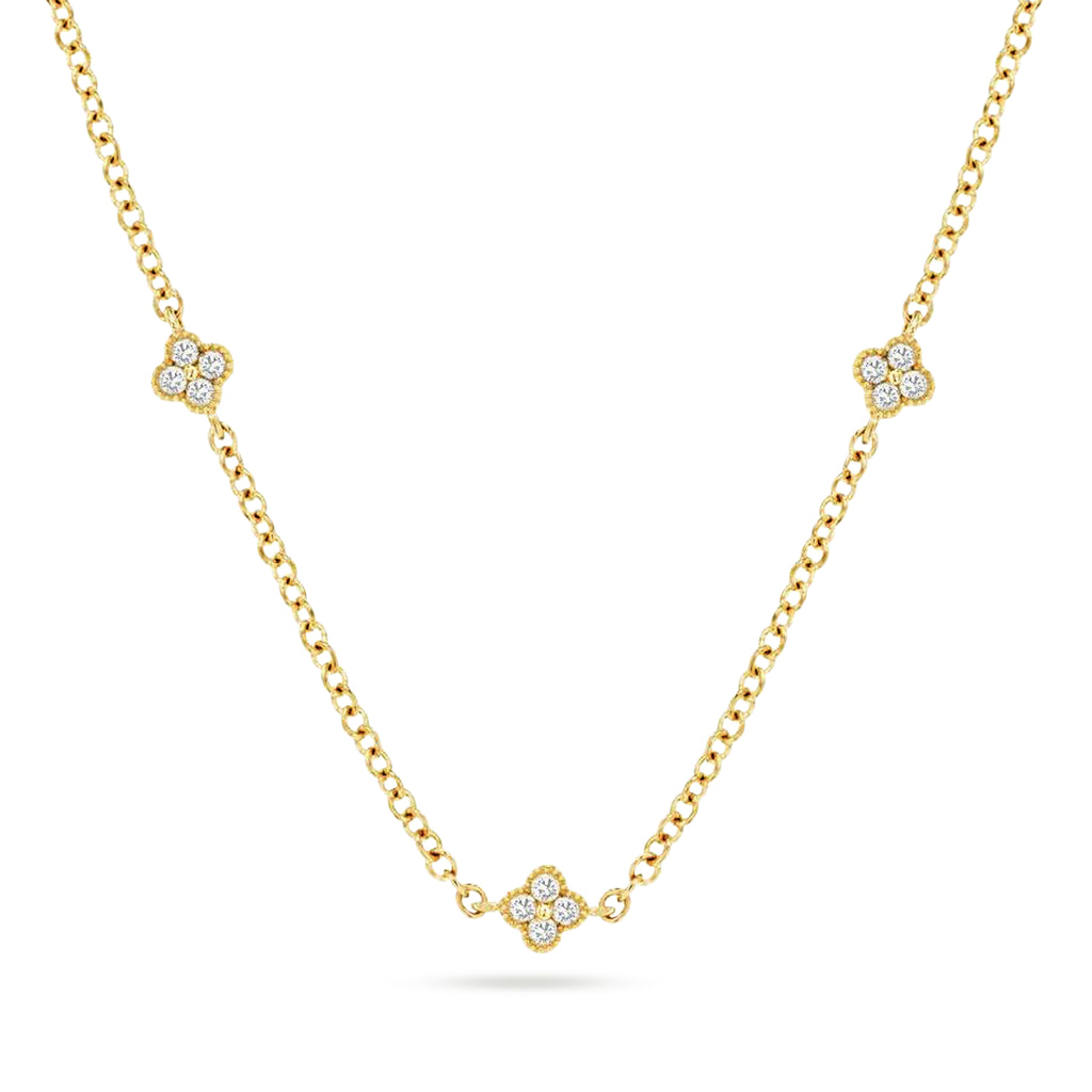 14K Yellow Gold 7 Station Diamond Petal Necklace (0.25CTW)
