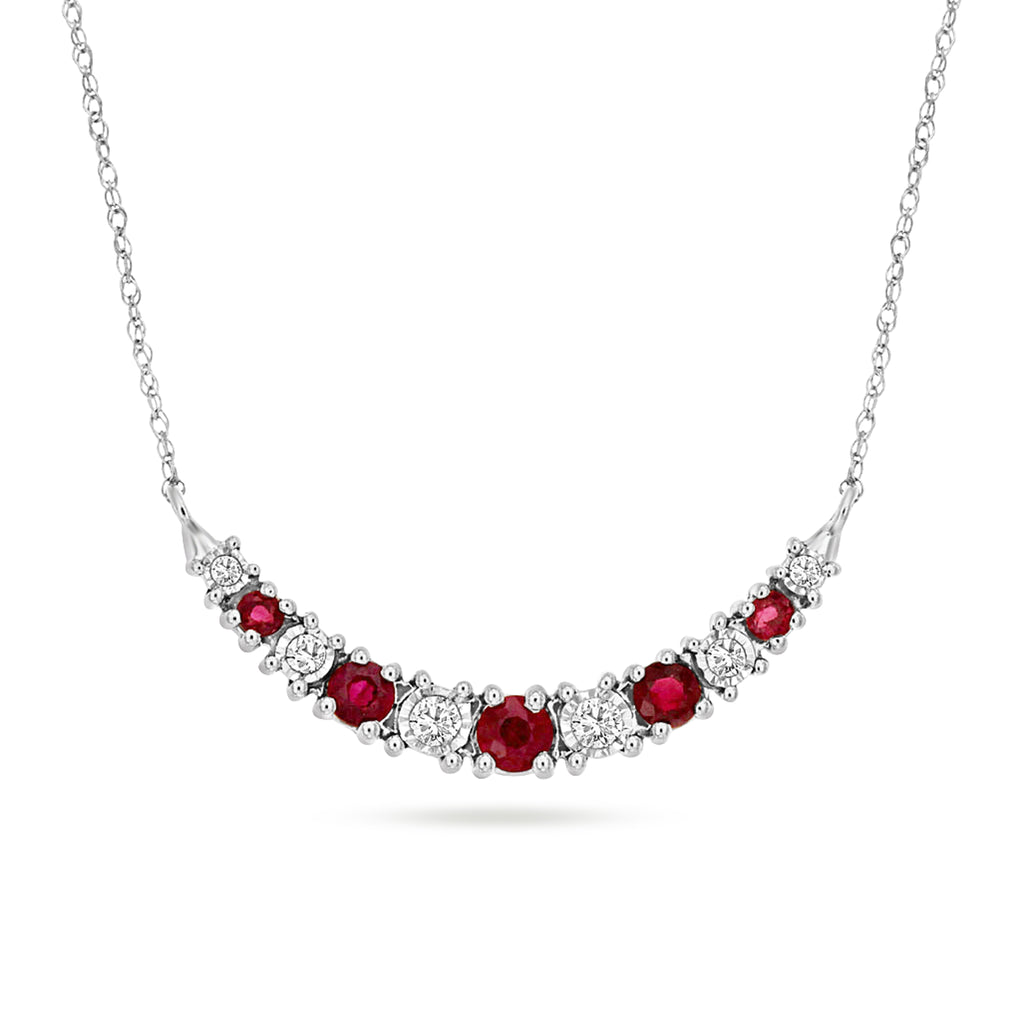 14K White Gold Ruby and Diamond Alternating Curved Necklace