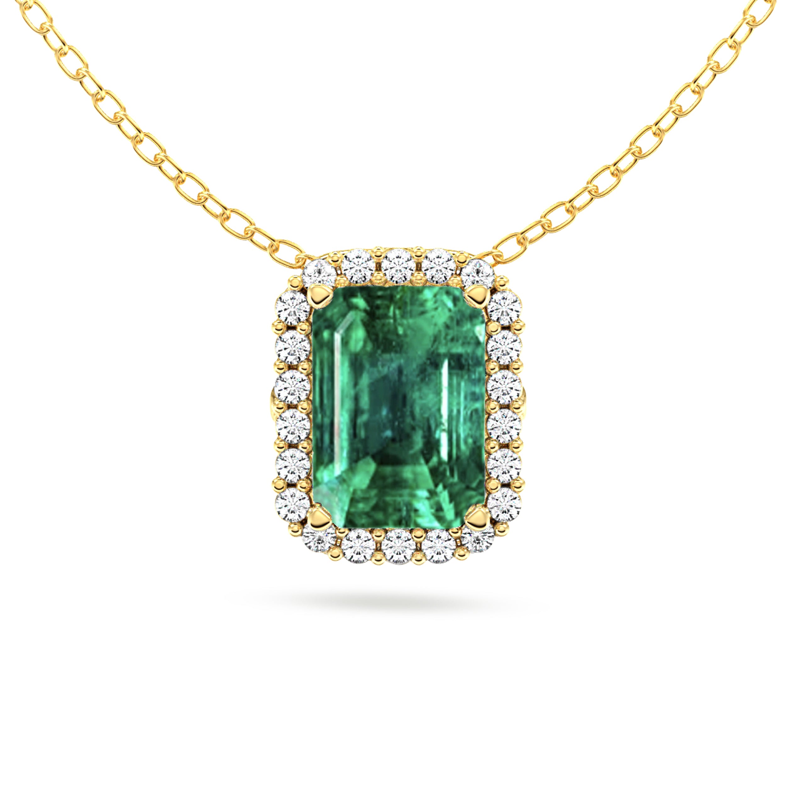 Emerald and Diamond Halo Necklace (0.78CT)