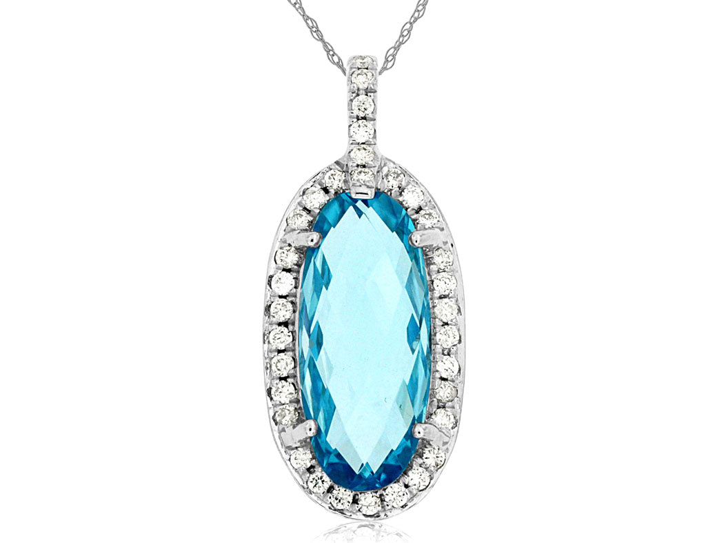 Blue Topaz & Diamond Pendant in 14K White Gold