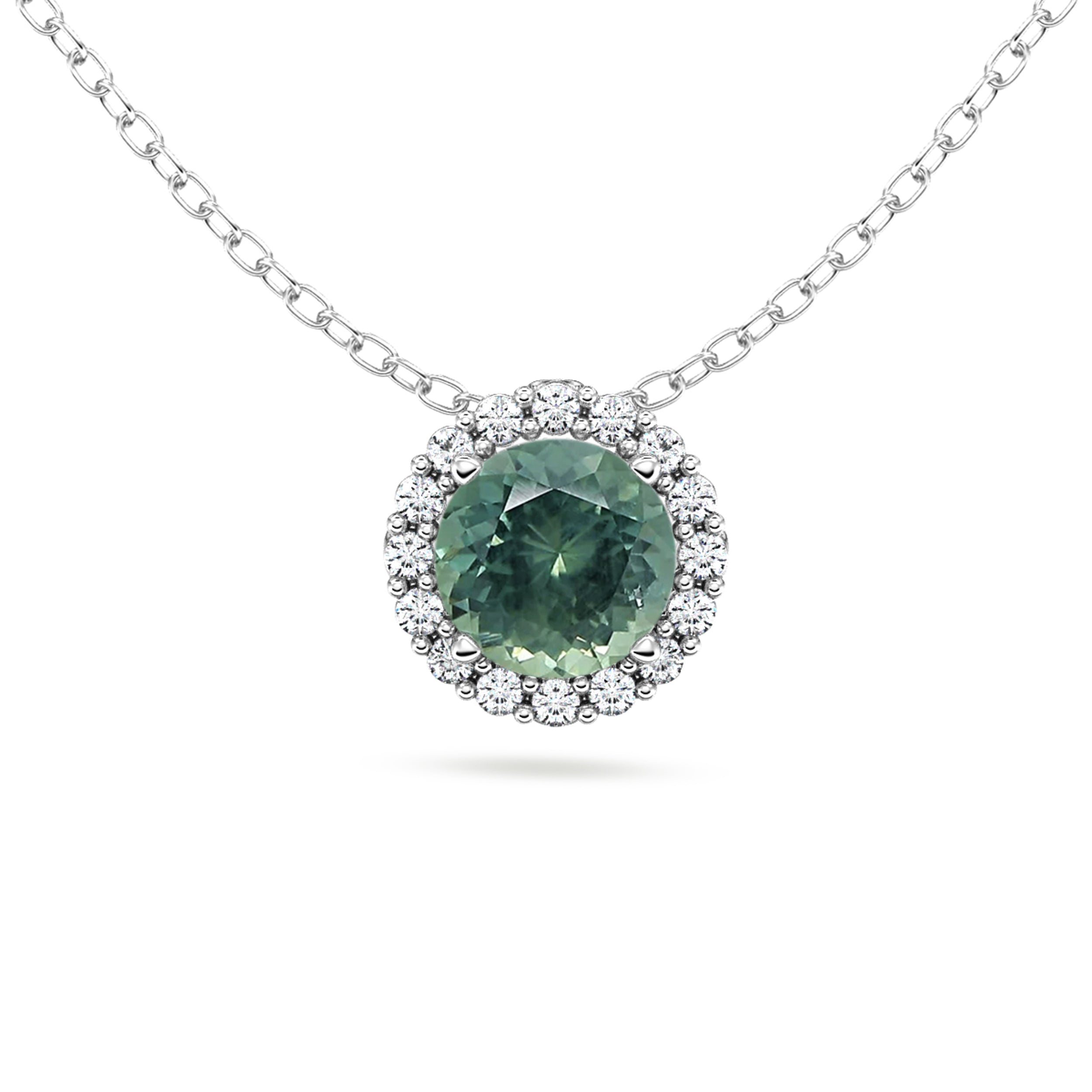 Round Montana Sapphire Diamond Halo Necklace (0.58CT)
