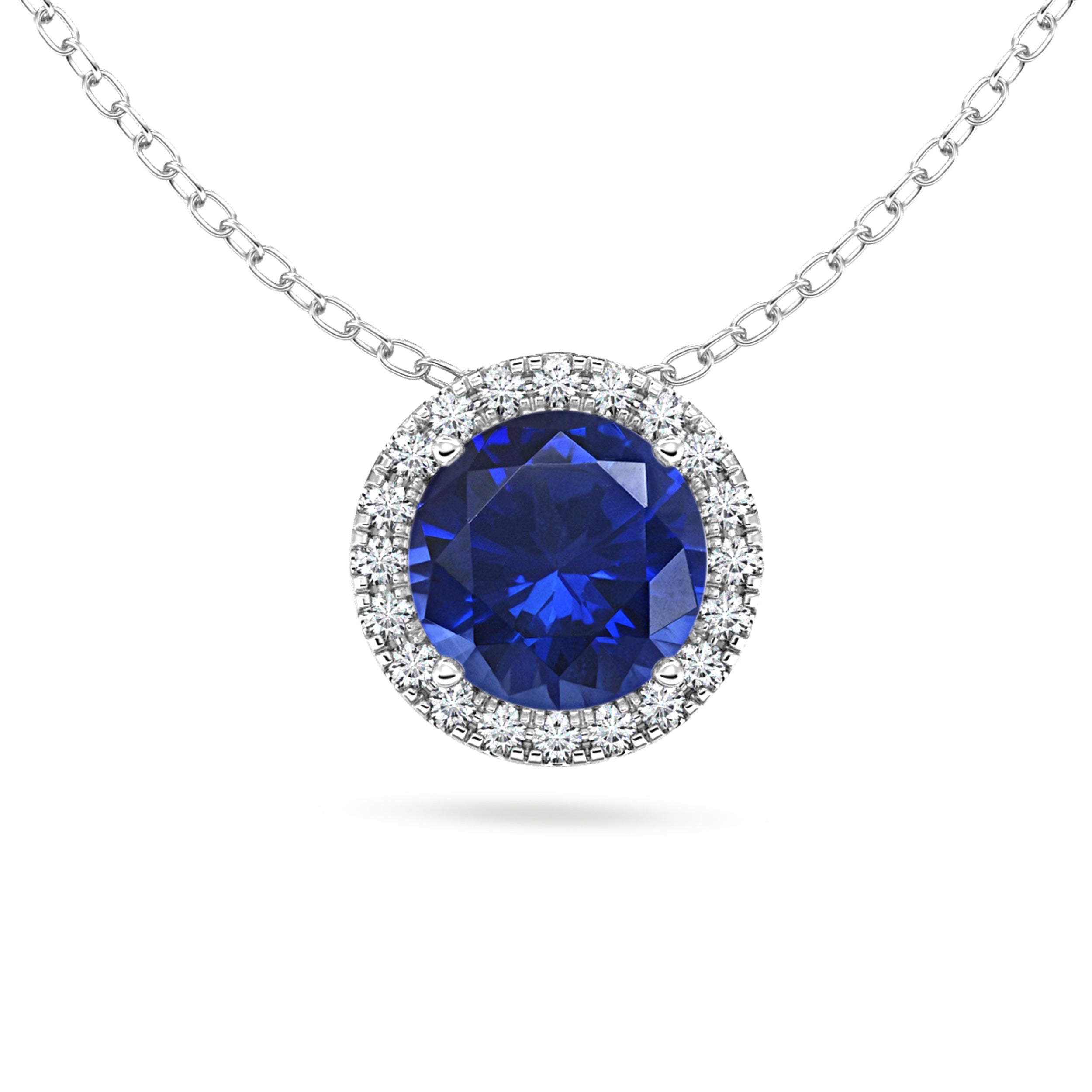 Round Sapphire Diamond Halo Necklace (1.06CT)